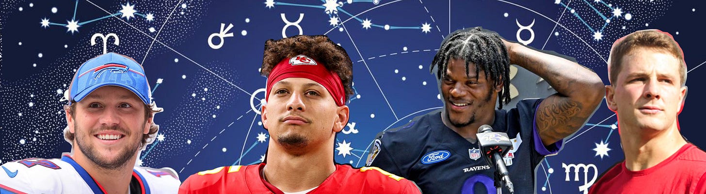 Buffalo Bills QB Josh Allen is a Gemini sun and Cancer moon. Geminis are famously creative!! But with a cancer moon? That’s an interesting mix. Cancer moons can be protective, introspective, and extremely emotionally sensitive (boyfriend note: “oh yeah, he’s a huge crybaby”). He might feel kind of misunderstood emotionally (although not by his gf, none other than Hailee Steinfeld— we had to name drop), but on the field he can show off his innovative play strategy. I won’t drop boring stats, but he’s the first quarterback in NFL history to have some impressive feats like most passing and rushing yards. You gotta be creative and emotionally brave for that!!