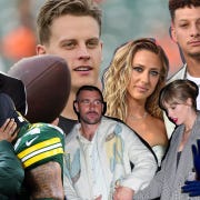 Le duh. And to brave the -7ºF game(!), she wore the cutest custom-made jacket with Travis’s name and number on it. It was created and designed by Kristin Juszczyk, wife of a player on the 49ers. Women supporting women …supporting men! AKA the plot of Barbie. Kristin also made one for Taylor Lautner (omg), Brittany Mahomes, and Simone Biles! Taylor (Swift) and Brittany were adorbs dancing and hanging together at the game in their matching jackets repping their lovers and swag surfin.
